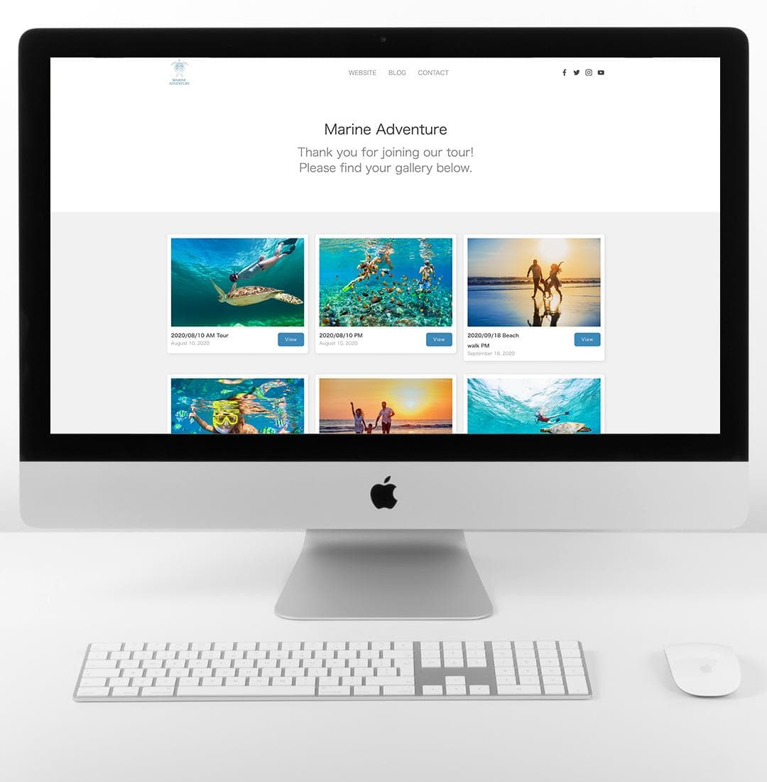 ツアーの後すぐデータをギャラリーへドラッグ&ドロップ。Phototreeの高速アップロードはお客様がお帰りの準備をしている間に完了し、その場で納品できるくらいの速さです!